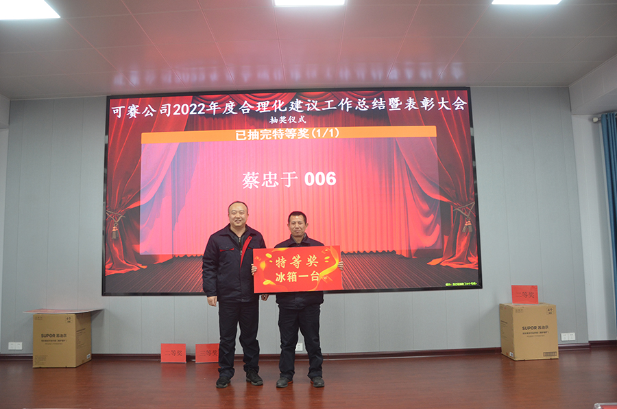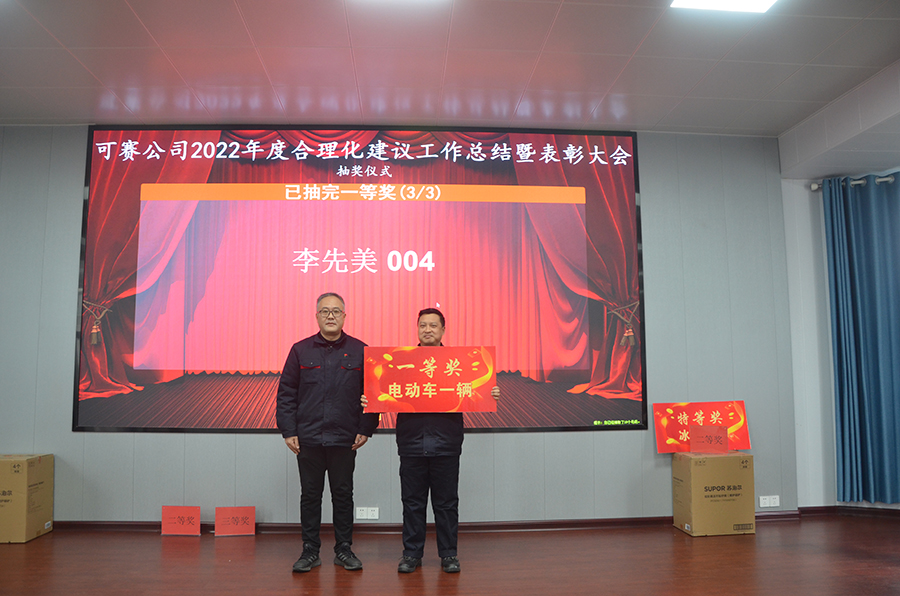 2月9日下午14:45,可賽公司2022年度合理化建議工作總結(jié)表彰暨抽獎活動在三樓多功能廳隆重舉行。公司黨委副書記、紀(jì)委書記、工會主席王宜波向大會報告了公司2022年合理化建議工作總體情況,總結(jié)了亮點,指出了問題,對2023年合理化建議工作思路措施進(jìn)行了布置安排。