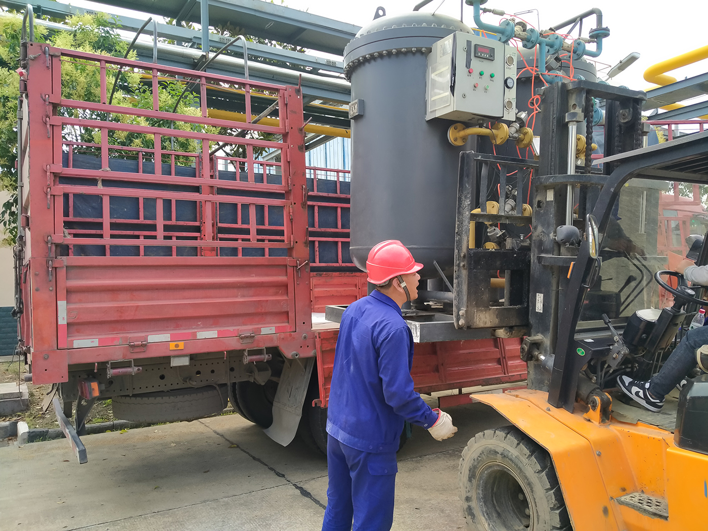 動(dòng)力車間照生產(chǎn)部的安排,已做好將舊制氮機(jī)發(fā)貨到指定維修廠家的準(zhǔn)備工作。6月7日14:00,維修班向斌、毛顯群等人在現(xiàn)場(chǎng)將舊制氮機(jī)從原設(shè)備基礎(chǔ)上拆卸下來。由于制氮間空間較小,叉車在屋內(nèi)作業(yè)受到局限,向斌等人反復(fù)想辦法,最終多人合力用撬桿數(shù)次移動(dòng)設(shè)備位置,才保證叉車將設(shè)備移出屋外。15:30,在向斌等人的不懈努力下,設(shè)備終于安全地裝車,圓滿完成當(dāng)天的任務(wù)。