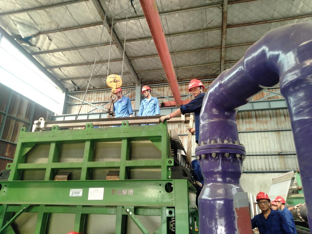 只要我們走進電解車間離子膜現(xiàn)場就會看到檢修中的不同身影。他們每天披著清晨的第一縷陽光奔赴檢修現(xiàn)場,無論何時,只要有檢修任務的地方,就會看到他們忙碌的身影。他們沒有熱情洋溢的工作宣言,只有熱火朝天的工作場面——有的忙著拆卸堿管,有的在吊膜組件,有的忙著運送檢修需要的零件,有的忙碌地辦理各種作業(yè)票證,有的在一絲不茍地上螺栓……